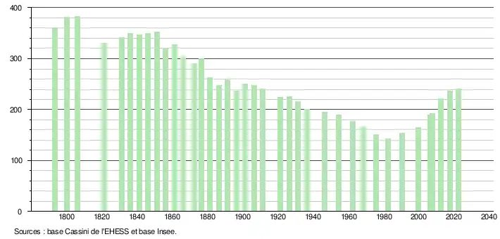 - ↑ Fiches Insee - Populations de référence de la commune pour les années 2006, 2007, 2008, 2009, 2010, 2011, 2012, 2013, 2014, 2015, 2016, 2017, 2018, 2019, 2020, 2021 et 2022.