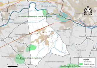 L’inventaire des zones naturelles d'intérêt écologique, faunistique et floristique (ZNIEFF) a pour objectif de réaliser une couverture des zones les plus intéressantes sur le plan écologique, essentiellement dans la perspective d’améliorer la connaissance du patrimoine naturel national et de fournir aux différents décideurs un outil d’aide à la prise en compte de l’environnement dans l’aménagement du territoire. Deux ZNIEFF de type 1[Note 3] sont recensées sur la commune[23] : les « bois d'Aubasc et cap de Houcheton » (135 ha), couvrant 4 communes du département[24] et « la Garonne de Montréjeau jusqu'à Lamagistère » (5 075 ha), couvrant 92 communes dont 63 dans la Haute-Garonne, trois dans le Lot-et-Garonne et 26 dans le Tarn-et-Garonne[25] et deux ZNIEFF de type 2[Note 4],[23] :