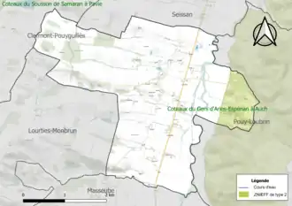 Une ZNIEFF de type 2[Note 1] est recensée sur la commune[12] : les « coteaux du Gers d'Aries-Espénan à Auch » (13 191 ha), couvrant 31 communes dont 28 dans le Gers et trois dans les Hautes-Pyrénées[13].