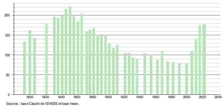 - ↑ Fiches Insee - Populations de référence de la commune pour les années 2006, 2007, 2008, 2009, 2010, 2011, 2012, 2013, 2014, 2015, 2016, 2017, 2018, 2019, 2020, 2021 et 2022.