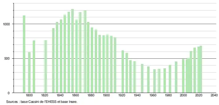 - ↑ Fiches Insee - Populations de référence de la commune pour les années 2006, 2007, 2008, 2009, 2010, 2011, 2012, 2013, 2014, 2015, 2016, 2017, 2018, 2019, 2020, 2021 et 2022.