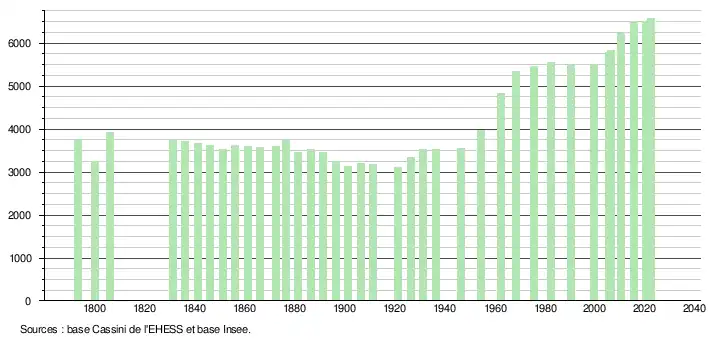 - ↑ Fiches Insee - Populations de référence de la commune pour les années 2006, 2007, 2008, 2009, 2010, 2011, 2012, 2013, 2014, 2015, 2016, 2017, 2018, 2019, 2020, 2021 et 2022.