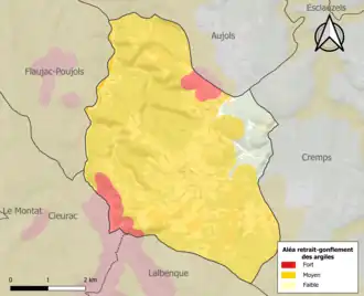 Le retrait-gonflement des sols argileux est susceptible d'engendrer des dommages importants aux bâtiments en cas d’alternance de périodes de sécheresse et de pluie. 92,5 % de la superficie communale est en aléa moyen ou fort (67,7 % au niveau départemental et 48,5 % au niveau national). Sur les 183 bâtiments dénombrés sur la commune en 2019, 183 sont en aléa moyen ou fort, soit 100 %, à comparer aux 72 % au niveau départemental et 54 % au niveau national. Une cartographie de l'exposition du territoire national au retrait gonflement des sols argileux est disponible sur le site du BRGM[26],[Carte 2].
