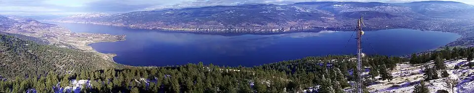Le lac Okanagan entre Kelowna (au premier plan) et le district municipal de Westside (à l'arrière plan) | |||