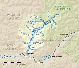 Le lac Shannon est au sud du lac Baker sur le Baker, non loin de la confluence avec le fleuve Skagit.