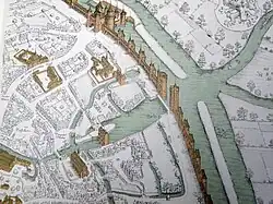 Le fleuve historique Reie, qui draînait toute la zone au sud de Bruges, et que l’on identifie généralement avec les actuels cours d’eau Waardammerbeek et Rivierbeek, pénétrait dans le vieux Bruges par le sud, après avoir accueilli, peu avant de traverser les remparts de la ville, plusieurs petits affluents, dont e.a. le Kerkebeek. Les eaux de la Reie s’écoulaient ensuite dans le Minnewater, situé intra muros, directement derrière la muraille d’enceinte.