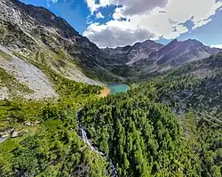 Il est entouré par le mont Charvet, la Becca Pouegnenta et le mont Colmet.