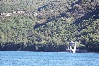 Sur cette même rive, à proximité de la Plage de St-Julien, se trouve la première des deux imposantes prises d'eau qui participent à l'alimentation du canal de Provence. L'eau passe ensuite par la Galerie des Maurras et d'autres galeries et canaux ouverts pour rejoindre le Canal de Provence près de Rians.
