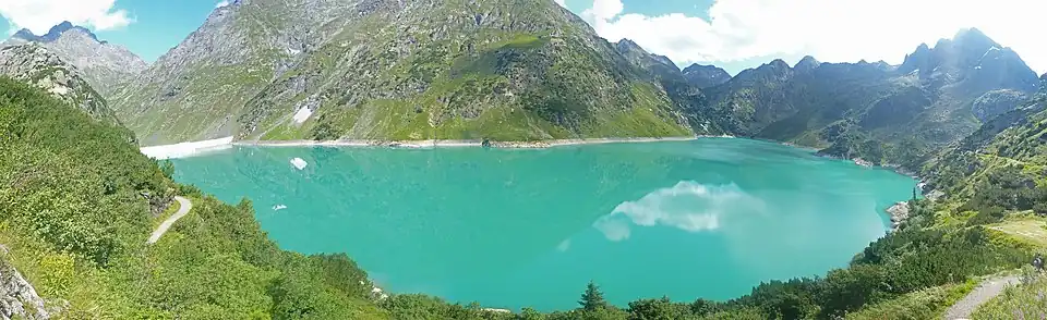 La couleur verdâtre est due à la turbidité de l'eau provenant de la valle del Trobio, une vallée comprise entre Monte Costone, Monte Trobio, Monte Gleno, Pizzo dei Tre Confini et Pizzo Recastello, au sommet de laquelle se trouve le glacier de Gleno, l'un des rares glaciers encore en vie dans la région de Bergame, et certainement le plus important.