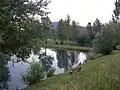 Un des lacs avec des nichoirs pour les canards colvert.