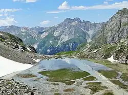 Le lac des Vaches au pied de la Grande Casse (à droite). | |||