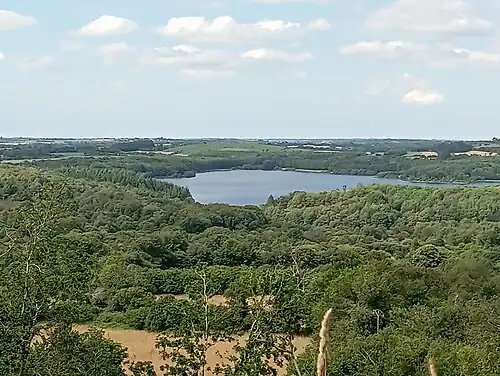 La plage du lac du Drennec (près de la crêperie).- Le lac du Drennec en basses eaux.