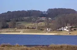 Le lac du Tolerme avec Sénaillac en arrière-fond . | ||||
