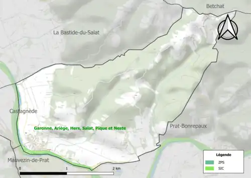 Le réseau Natura 2000 est un réseau écologique européen de sites naturels d'intérêt écologique élaboré à partir des directives habitats et oiseaux, constitué de zones spéciales de conservation (ZSC) et de zones de protection spéciale (ZPS)[Note 3]. Un site Natura 2000 a été défini sur la commune au titre de la directive habitats : « Garonne, Ariège, Hers, Salat, Pique et Neste »[27], d'une superficie de 9 581 ha, un réseau hydrographique pour les poissons migrateurs, avec des zones de frayères actives et potentielles importantes pour le Saumon en particulier qui fait l'objet d'alevinages réguliers et dont des adultes atteignent déjà Foix sur l'Ariège[28].