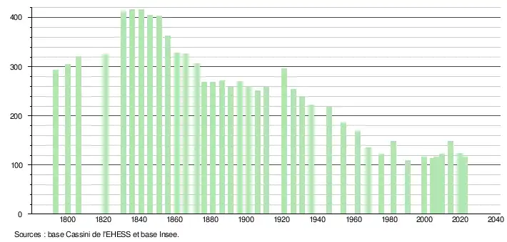 - ↑ Fiches Insee - Populations de référence de la commune pour les années 2006, 2007, 2008, 2009, 2010, 2011, 2012, 2013, 2014, 2015, 2016, 2017, 2018, 2019, 2020, 2021 et 2022.