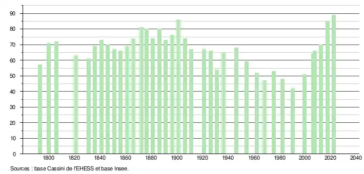 - ↑ Population municipale de référence en vigueur au 1er janvier 2025, millésimée 2022, définie dans les limites territoriales en vigueur au 1er janvier 2024, date de référence statistique : 1er janvier 2022.