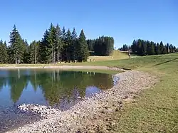 Son sommet est constitué de deux bosses s'élevant à 1 607 et 1 591 mètres d'altitude[1]. Juste au nord du sommet se trouve le lac du Lachat.