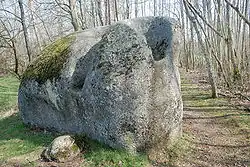 Il s'agit d'une roche à cupule en granite de 20 à 30 m3 de granite avec présence de bassins et de sièges.