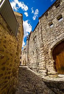 Au sommet du village, les ruines du château du marquis de Sade, pillé à la Révolution. | |||||