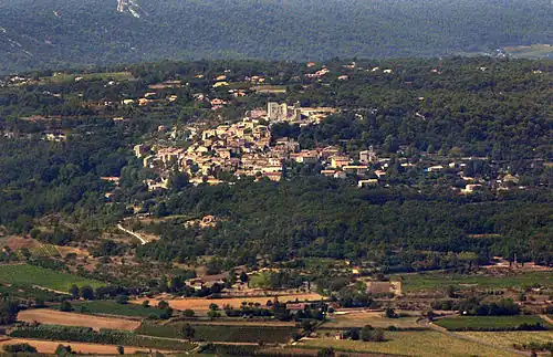 La commune s'étend jusqu'au sommet où se trouve la forêt des cèdres au sud et descend vers la plaine du Calavon au nord.