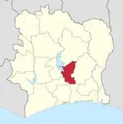 Depuis le redécoupage administratif de 2011, la ville de Yamoussoukro est devenue district autonome, tandis que le reste de l'ancienne région des Lacs (départements de Tiébissou et Toumodi) a été rebaptisée région du Bélier, qui fait partie du nouveau district des Lacs. Le nouveau district des Lacs regroupe donc l'ensemble de l'ancienne région des Lacs moins le département de Yamoussoukro (devenu district autonome), plus l'ensemble de l'ancienne région du N'zi-Comoé (qui a servi de base à la formation de trois nouvelles régions au sein du district des Lacs).
