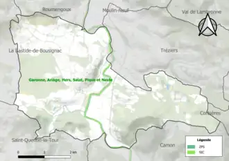 Le réseau Natura 2000 est un réseau écologique européen de sites naturels d'intérêt écologique élaboré à partir des directives habitats et oiseaux, constitué de zones spéciales de conservation (ZSC) et de zones de protection spéciale (ZPS)[Note 3]. Un site Natura 2000 a été défini sur la commune au titre de la directive habitats : « Garonne, Ariège, Hers, Salat, Pique et Neste »[29], d'une superficie de 9 581 ha, un réseau hydrographique pour les poissons migrateurs, avec des zones de frayères actives et potentielles importantes pour le Saumon en particulier qui fait l'objet d'alevinages réguliers et dont des adultes atteignent déjà Foix sur l'Ariège[30].