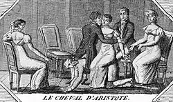 - ↑ « Le cheval d'Aristote » dans Barthélemy Prosper Enfantin, Le Petit savant de société, ouvrage dédié à la jeunesse des deux sexes, contenant la manière de jouer tous les jeux innocens dont on s'amuse en société, et les pénitences qui s'y ordonnent, avec la manière de s'y conformer en les exécutant. Recueil extrait des manuscrits de M. Enfantin, et corrigé et augmenté par M. de Belair, 3e éd., T. IV, Caillot, Paris, circa 1810, 160 p.