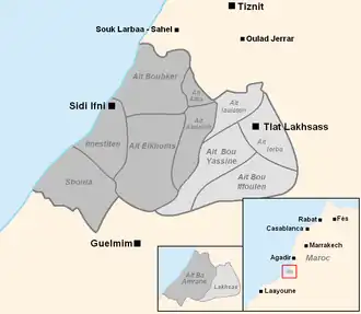 - Aït Bou Iffoulen, dans et autour de la ville de Bouizakaren, au sud du territoire de la commune de Sidi Hssain Ou Ali ;