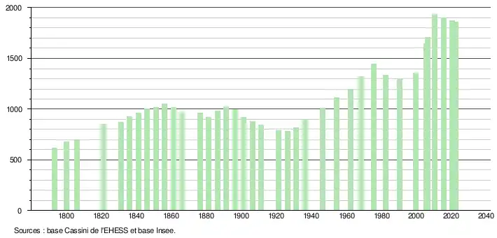- ↑ Fiches Insee - Populations de référence de la commune pour les années 2006, 2007, 2008, 2009, 2010, 2011, 2012, 2013, 2014, 2015, 2016, 2017, 2018, 2019, 2020, 2021 et 2022.
