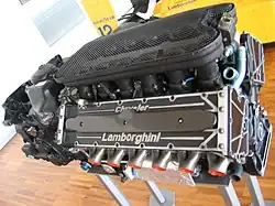 Enfin, la décision est finalement prise d'engager Lamborghini en compétition. Installée à Modène, la nouvelle division, dont le budget initial est de 5 millions de dollars[36], est managée par Daniele Audetto et présidée par Emile Novaro ; Mauro Forghieri, un talentueux ingénieur ayant notamment œuvré au sein de l'équipe de la Scuderia Ferrari, est chargé de dessiner un moteur V12 de 3,5 L, indépendamment des précédents V12 développés par Lamborghini pour ses GT[37].