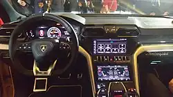 L'Urus reçoit une instrumentation numérique en remplacement du bloc d'instrumentation analogique, dérivé du Virtual Cockpit de son cousin Audi, ainsi que deux écrans tactiles sur la console centrale[17].