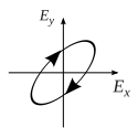 - la polarisation circulaire : les champs électriques et magnétiques de la lumière oscillent sur un cercle. Le vecteur de Jones correspondant est : avec . Le signe de l'angle φ dépendant du sens de parcours du cercle par le champ électromagnétique.