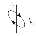 - la polarisation elliptique : les champs électriques et magnétiques de la lumière oscillent sur une ellipse. L'onde est alors représentée par un vecteur d'onde de la forme :