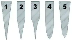 Les différents types de lames, abstraction faite de l'éventuelle denture (n'est considérée ici que la pointe à proprement parler) :