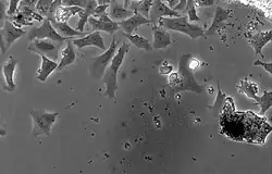 Le lamellipode est une large extension membranaire faite de filament d’actine que la cellule utilise pour explorer son environnement à la recherche de matrice extracellulaire. Le lamellipode est une structure saillante de migration riche en actine. Sa formation est dépendante d’une protéine G monomérique nommée Rac1. Les lamellipodes permettent le mouvement de la cellule par quatre étapes : protrusion, adhésion, translocation et retraction.