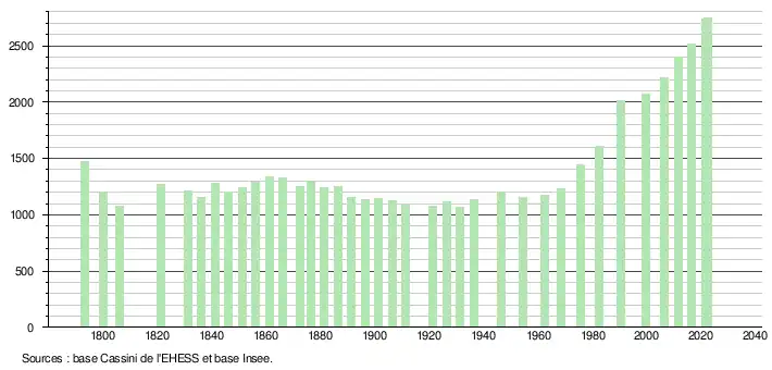 - ↑ Fiches Insee - Populations de référence de la commune pour les années 2006, 2007, 2008, 2009, 2010, 2011, 2012, 2013, 2014, 2015, 2016, 2017, 2018, 2019, 2020, 2021 et 2022.
