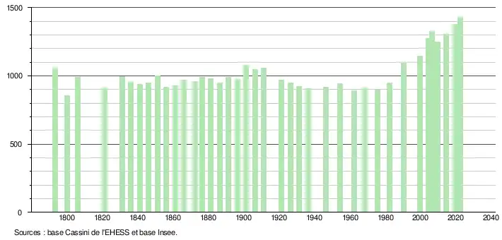 - ↑ Fiches Insee - Populations de référence de la commune pour les années 2006, 2007, 2008, 2009, 2010, 2011, 2012, 2013, 2014, 2015, 2016, 2017, 2018, 2019, 2020, 2021 et 2022.