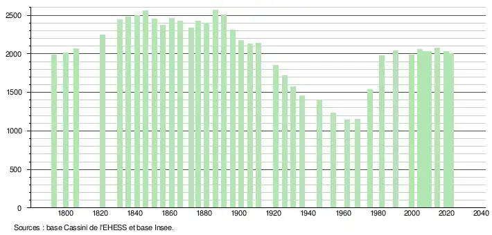 - ↑ Fiches Insee - Populations de référence de la commune pour les années 2006, 2007, 2008, 2009, 2010, 2011, 2012, 2013, 2014, 2015, 2016, 2017, 2018, 2019, 2020, 2021 et 2022.