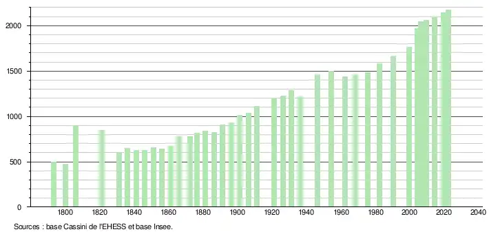 - ↑ Fiches Insee - Populations de référence de la commune pour les années 2006, 2007, 2008, 2009, 2010, 2011, 2012, 2013, 2014, 2015, 2016, 2017, 2018, 2019, 2020, 2021 et 2022.