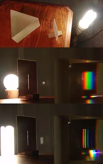 Les lumières peuvent venir de différentes matières. Leur spectre lumineux dépend donc de la matière ayant produit la lumière. Par exemple une lampe à incandescence pourra produire toutes les lumières, alors qu'une lampe à gaz se limite à certaines fréquences.