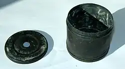 Le plus souvent situé en bas, d'un volume courant de 300 cm3, et muni d'une grande ouverture pour le remplir de blocs de carbure de calcium qui doivent avoir un volume d'environ 80 cm3 pour l'utilisation dans une lampe.