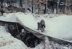 Mise en place d'un lance-mines 8,1 cm 1933 dans les Alpes en hiver 1940.