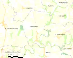 L'Aulne limite à l'est et au sud le territoire communal, séparant Landeleau respectivement de Kergloff à l'est, de Cléden-Poher au sud-est, de Spézet au sud. À l'ouest, c'est un affluent de rive droite de l'Aulne qui sert de limite communale avec Châteauneuf-du-Faou au sud-ouest et pour partie avec Plonévez-du-Faou à l'ouest, commune avec laquelle, plus au nord, la limite communale ne s'appuie pas sur des éléments naturels aussi nets, passant en lisière du bois de Coat Bihan. Au nord, la limite avec Collorec parcourt plateau et collines, longeant un temps la route départementale 48 allant de Collorec à Kergloff avant de coïncider pendant une distance d'environ deux kilomètres avec le cours aval de l'Éllez jusqu'à sa confluence avec l'Aulne à hauteur du hameau de Pénity-Saint-Laurent[1].