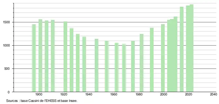 - ↑ Fiches Insee - Populations de référence de la commune pour les années 2006, 2007, 2008, 2009, 2010, 2011, 2012, 2013, 2014, 2015, 2016, 2017, 2018, 2019, 2020, 2021 et 2022.