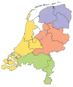 Ils sont au nombre de quatre : Noord-Nederland, Oost-Nederland, West-Nederland et Zuid-Nederland.