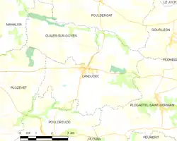 Le bourg serait en situation assez centrale au sein de son finage communal s'il n'y avait pas la partie sud-est de la commune voisine de Guiler-sur-Goyen qui s'y enfonce jusqu'à toucher le bourg de Landudec, ce qui en limite l'extension côté nord-ouest.