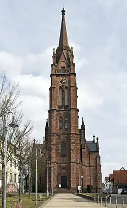 La haute tour de l'église domine l'image de la vieille ville de Langen. Le bâtiment de style néogothique a été inauguré en 1883. L'église a été construite par l'architecte Johann Christian Horst. L'intérieur de l'église a été restauré en 1959 dans le style de l'époque de son édification. Quand l'église a dû être rénovée, il a été décidé que le design original de 1883 devait servir de modèle. Depuis 1997, la nef brille à nouveau dans les couleurs du néogothique.
