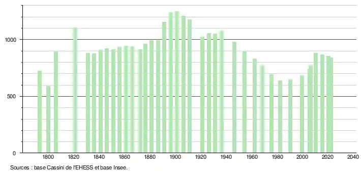 - ↑ Fiches Insee - Populations de référence de la commune pour les années 2006, 2007, 2008, 2009, 2010, 2011, 2012, 2013, 2014, 2015, 2016, 2017, 2018, 2019, 2020, 2021 et 2022.