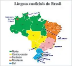 - ↑ Projeto de lei oficializa segunda língua em municípios com comunidade indígena