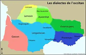 - ↑ Domergue Sumien (Université de Toulouse-2), « La classificacion dei dialèctes occitans », Linguistica occitana 7 (2009) pp. 1-55 « en ligne »(Archive.org • Wikiwix • Archive.is • Google • Que faire ?)